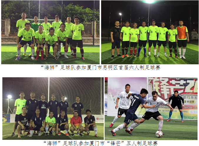 2018年以来,所团委指导“海狮”足球队开展了一系列社会活动。球队先后参加了思明区首届六人制足球赛、厦门市“锋芒”五人制足球赛等赛事,与厦门市企事业单位的各界足球爱好者进行了友好的交流。此外,“海狮”足球队还组织开展“新时代新青年新风采”巡回联谊赛,与多家厦门市直机关单位的青年进行了联谊和互动。